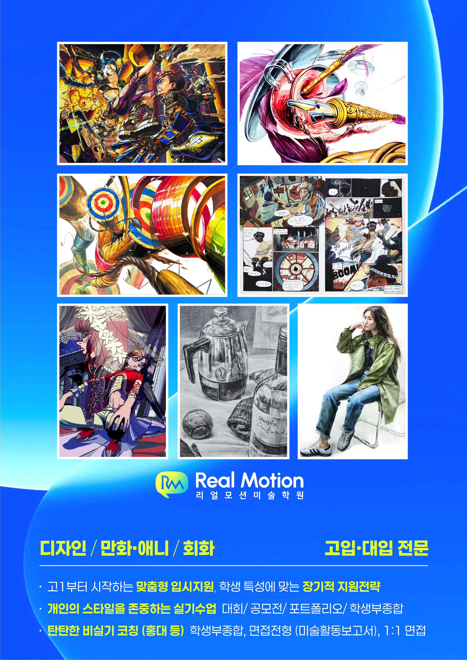 ◆ 리얼모션 미술 학원은 매주 월요일 휴강이며, 방학기간 중 일요일 수업이 월요일로 대체됩니다